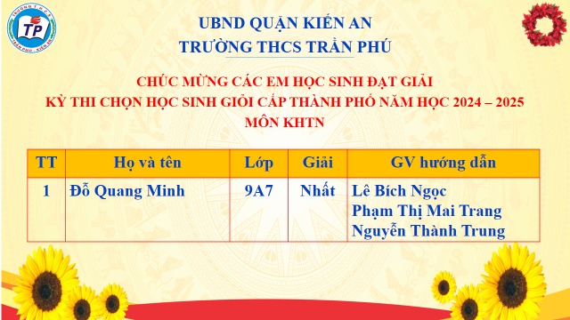 Dưới sự hướng dẫn ôn luyện tận tình của các thầy cô giáo, các em học sinh đã rất tích cực, chăm chỉ, cố gắng trong suốt quá trình ôn luyện. Xin chúc mừng các thầy cô giáo và các em học sinh đã hoàn thành xuất sắc nhiệm vụ và đạt kết quả cao, với 11 giải trong đó có 1 giải Nhất, 2 giải Nhì, 2 giải Ba và 5 giải Khuyến Khích.