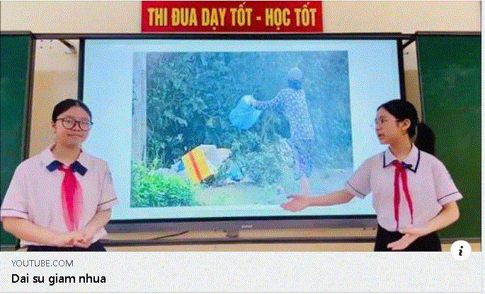 “Đại sứ giảm nhựa” là Cuộc thi nhằm kêu gọi học sinh hưởng ứng, truyền thông điệp giảm thiểu rác thải nhựa. Em Vũ Hương Ngân và Lê Hà Linh học sinh lớp 7C1, đại diện cho các em HS trong nhà trường tham gia cuộc thi. Các em đã nói lên thực trạng, nguyên nhân dẫn đến ô nhiễm rác thải nhựa như hiện nay