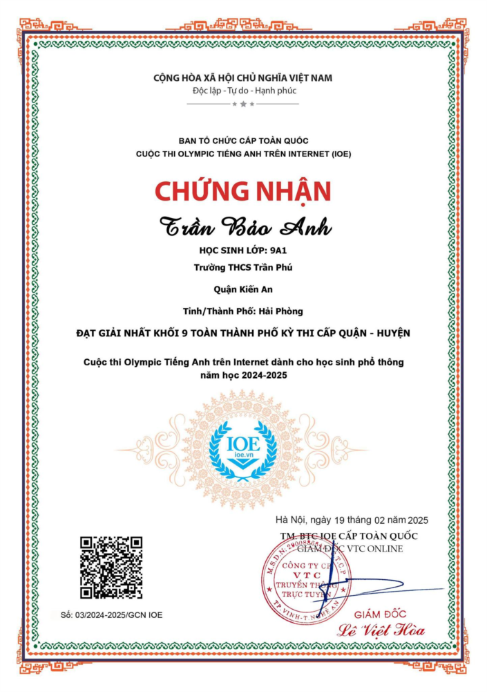 Dưới đây là giấy chứng nhận của các em đạt giải Nhất, Nhì, Ba, KK toàn thành phố kỳ thi cấp quận