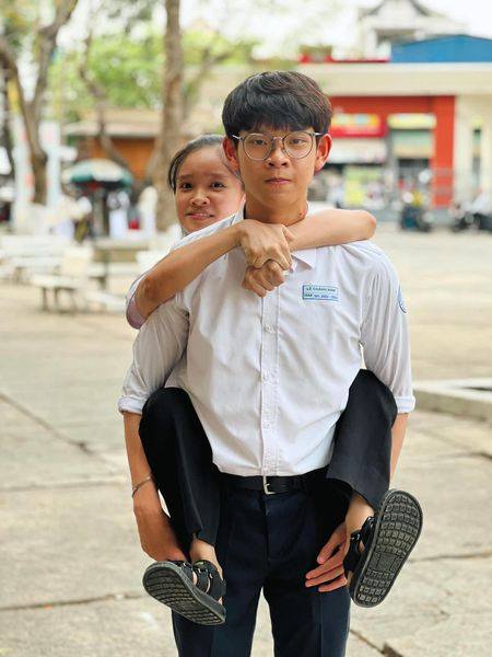 Đầu năm học, khi bạn đang là một học sinh lớp 10 trong môi trường hoàn toàn mới mẻ, biết tin bạn cùng lớp không có khả năng đi lại, Chánh Nam luôn sẵn sàng cõng bạn đến phòng học hay phải di chuyển khi cần.