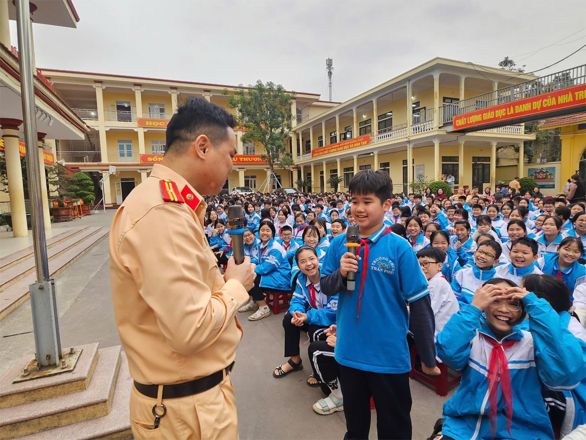 Chiều ngày 31/3/2025, trường THCS Trần Phú phối hợp với công an quận Kiến An tổ chức Tuyên truyền An toàn giao thông cho gần 900 em học sinh khối 6 và khối 8.